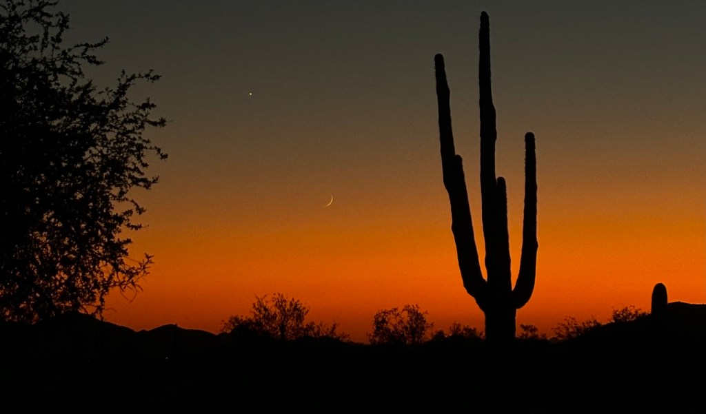 Some days the desert feels scarier than others. Today, I walk through the dusty landscape with my mom while carrying the last bag of ashes we have of my dad. The saguaros understand; they seem to bend forward, struggling to embrace me. One cactus stands tall and strong, highlighted by the orange rays of the setting sun behind him. Here, I empty the plastic bag and watch as my dad’s ashes mix with the swirling sandy dust around my feet.